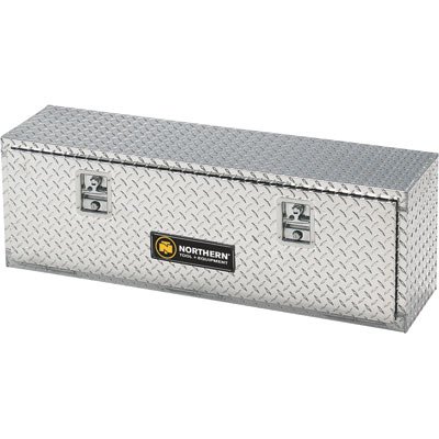 This Northern Tool + Equipment top-mount aluminum truck box provides secure storage for tools and work supplies. Top-mount design provides additional storage space without losing any valuable truck bed space. U.S.A.brbrbDimensions: A=48in.; B=12 3/4in.; C=16in. Refers to image diagram above./b Body Material: Aluminum, Body Finish: Tread plate, Doors (qty.): 1, Lock Included: Yes, Dimensions L x W x H (in.): 48 x 12 3/4 x 16